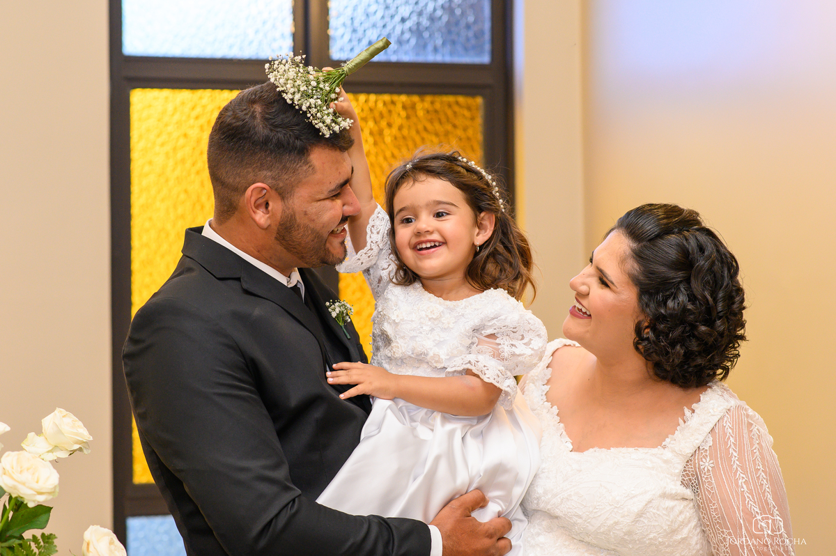 Um casamento repleto de felicidade, amor e emoção. O casal irradiava alegria, com a presença especial da filha como daminha trazendo ainda mais encanto ao momento. A celebração também foi marcada por histórias de amor inspiradoras: os pais da noiva comemorando 32 anos de união e os avós celebrando incríveis 63 anos de casamento. Foi emocionante registrar cada detalhe desse dia, em um ambiente leve e acolhedor, onde o celebrante e todos os presentes transbordavam satisfação pela beleza do evento.